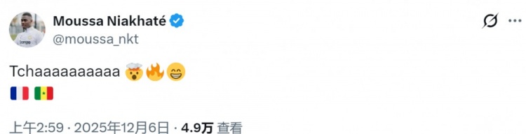 得知塞内加尔与法国同组之后,穆萨·尼亚卡特在社交媒体上发文:“Tchaaaaaaaaaa!(拟声感叹词)”表达自己的兴奋之情。